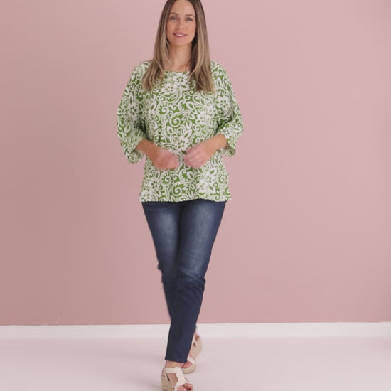 The Summer Ease Top has arrived in a new print - Green Hawaii, for a refreshing look for summer. The relaxed fit provides a comfortable, easy-going style, ideal for casual days or laid-back outings. Pair it with light trousers or jeans for a breezy, effortless look that radiates fun and energy.