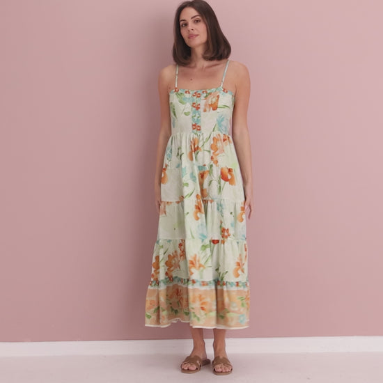 Toliara Sleeveless Dress - Mint/Tan Floral