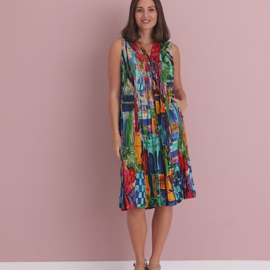 Sleeveless Organic Cotton V Pleated Dress - Oasis